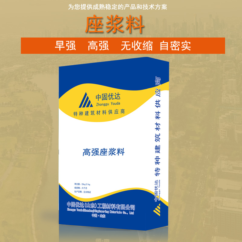 座浆料是灌浆料的一种,由水泥作为结合剂、高强度细骨料、复合膨胀剂、减水剂等掺合料及其他外加复合材料组成的水泥基干混料,具有早强、高强度、微膨胀、无收缩、不流挂、易施工等性能,加水搅拌后具有触变性、可塑性,硬化性保水性好,座浆料的使用可以避免其他灌浆料流动性过大,施工不易,颗粒太粗, 粘性差,泌水严重,开裂爆仓等现象。